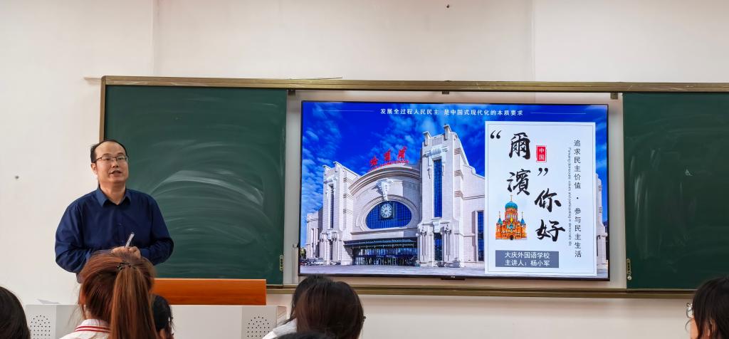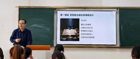 为贯彻学校领导关于人才培养的“反向设计,正向施工,产出导向”的工作要求,马克思主义学院坚持以学生为中心,积极行动、主动作为,注重通过创设专业、系统、优质的育人环境,不断提高人才培养质量。为有效提升2025级思想政治教育专业本科生的职业技能和高效准备“行知杯”师范生课堂教学综合技能竞赛,马克思主义学院密切关注和回应学生所需,2026年4月15日邀请大庆外国语学校附属学校副校长杨小军为学生做专题培训。马克思主义学院院长马吉芬教授、副院长郭元阳教授、思想政治教育专业执行负责人杨宏祥副教授、思想政治教育教研室李玉娣主任、辅导员汪丽媛与思想政治教育专业本科生一同参加培训。